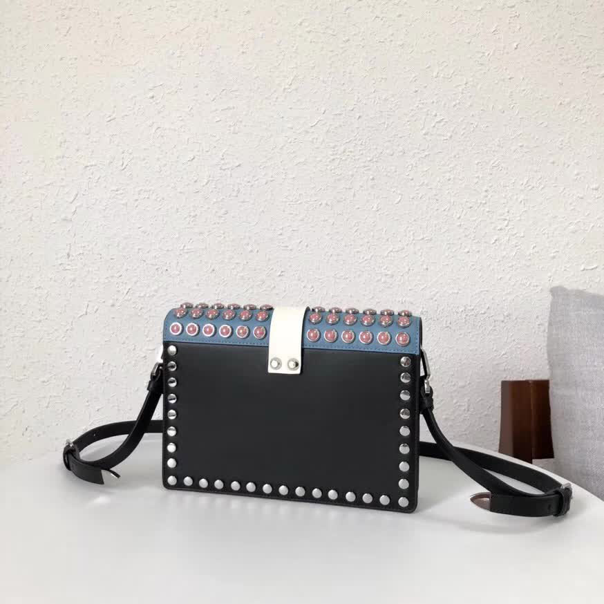 • 프라다 카이에 스터드 가죽 숄더 백 1BH018 빌리어드그린