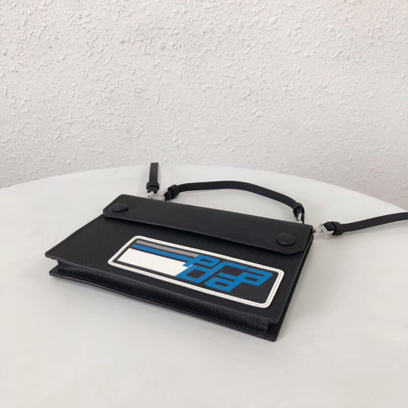• 프라다 로고 패치 장식의 사피아노 미니백 1DH007 블랙/블루