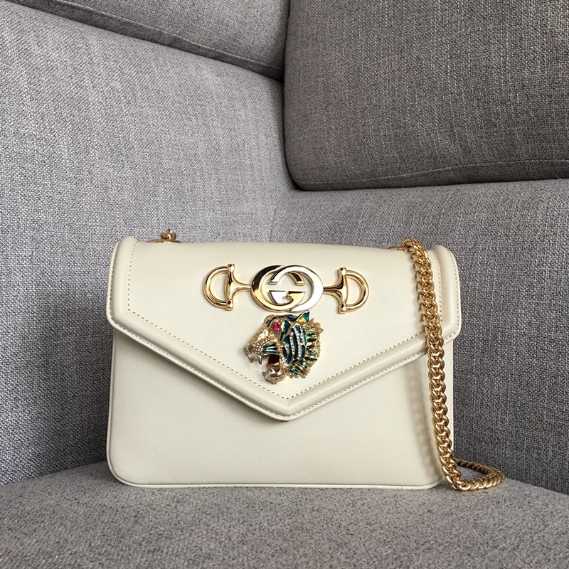 • 구찌 537243 타이거 헤드 디테일 숄더백 화이트