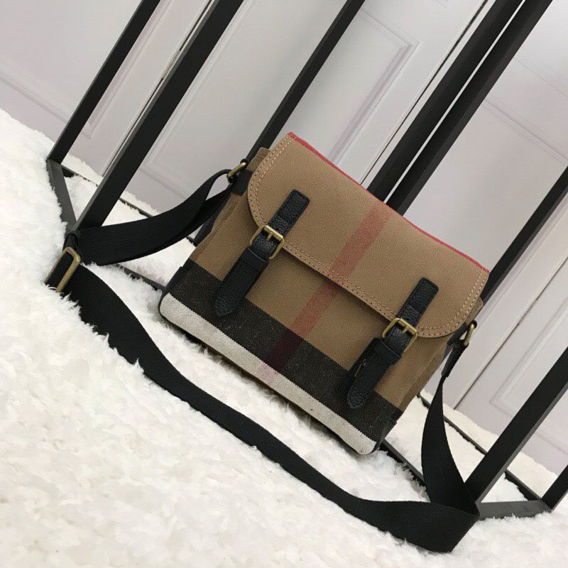Small Canvas Leather Check Messenger Bag