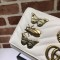 • 구찌 476434 프린트 가죽 벨트 백 화이트