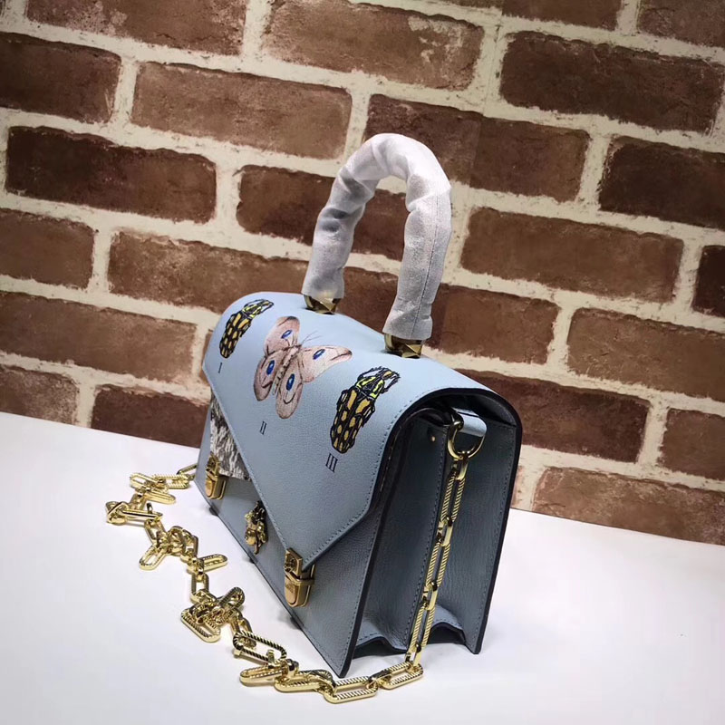 • 구찌 나비 디테일의 가죽 탑 핸들 백 488691   -화이트