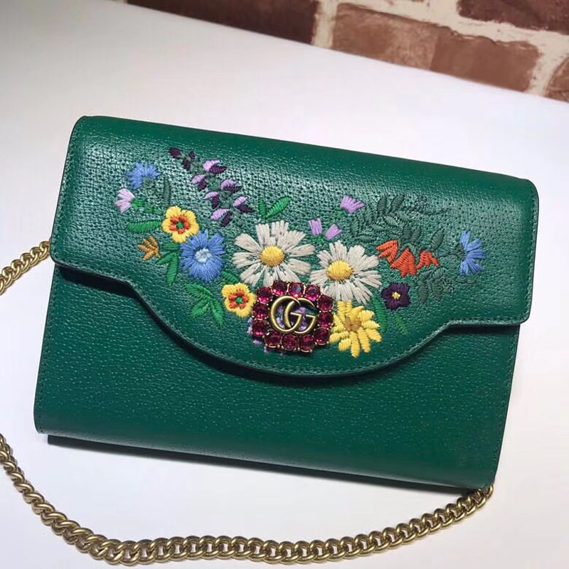 • 구찌 499314 마몬트 가죽 엠브로이더 체인 백