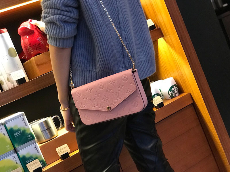 분리할 수 있는 내부 포켓 두 개가 포함된 포쉐트 펠리시의 모노그램 앙프렝뜨 모델입니다 소지품을 정돈하여 보관하기 좋은 스타일리시한 아이템입니다 분리 가능한 실버 체인을 활용하여 지갑 뿐만 아니라 매력적인 숄더백 혹은 클러치로도 연출할 수 있습니다
