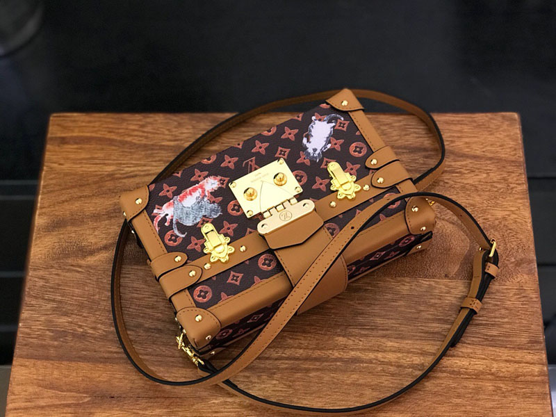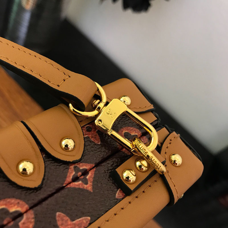 제품 세부 정보--- - 탈착형 가죽 스트랩 - 모노그램 캔버스 - 소가죽 트리밍 - 골드 마감 브라스 -락 - 골드 마감 브라스 - 자석형 여밈 - 양가죽 내피 - 루이 비통 트렁크 모티프 - 모노그램 캔버스 - 종류: 섬유제품 핸드백 - 소재: 캔버스 천연가죽(소) -