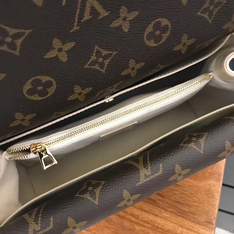 트렌디한 디자인과 활용성을 갖춘 더블 V입니다 섬세하게 결을 살린 고급스러운 가죽과 모노그램 캔버스의 조화가 돋보입니다 곡선을 이루는 부드러운 실루엣이 대담한 V 모양 덮개와 절묘한 대비를 연출합니다 손으로 들거나 분리형 스트랩을 활용하여 어깨에 걸쳐도 좋습니다