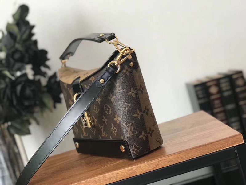 일본에서 영감을 받은 벤토 박스는 2018 크루즈 컬렉션의 대표적인 디자인입니다 클래식한 모노그램 캔버스와 모노그램 리버스 캔버스 소재 위에 가죽 트리밍과 골드 마감 금속 디테일을 더했습니다 손잡이와 스트랩이 모두 달려 있어 손으로 들거나 어깨에 걸치거나 크로스 바디로 착용할 수 있습니다