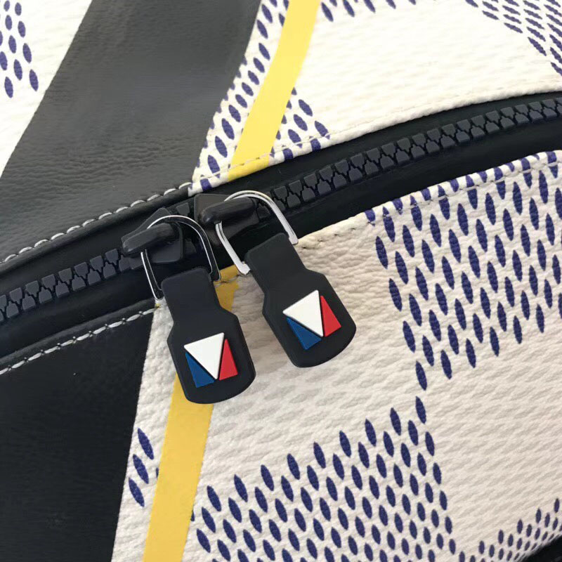 2017 아메리카스컵 컬렉션을 기념하며 선보이는 아폴로 백팩은 다미에 패턴을 오버사이즈로 재해석한 다미에 라티튜드 패턴에 모던하게 변형한 세로형 V 가스통 시그니처를 더한 디자인입니다 스포티한 마린 무드 디테일이 더해진 이 백팩은 수납 공간이 충분하여 장거리 여행에도 함께하기 좋은 아이템입니다