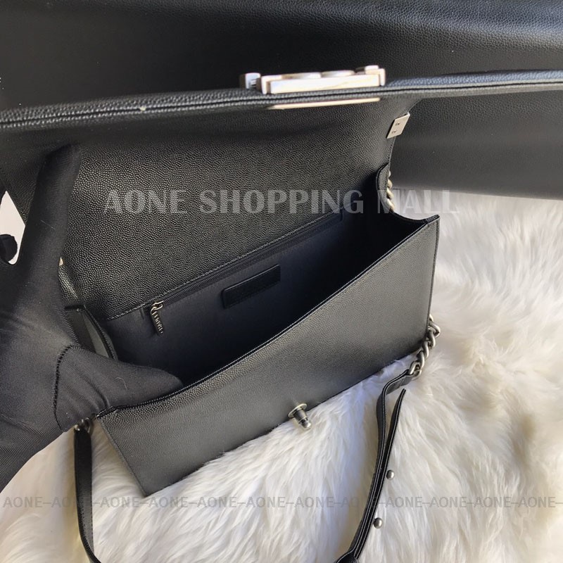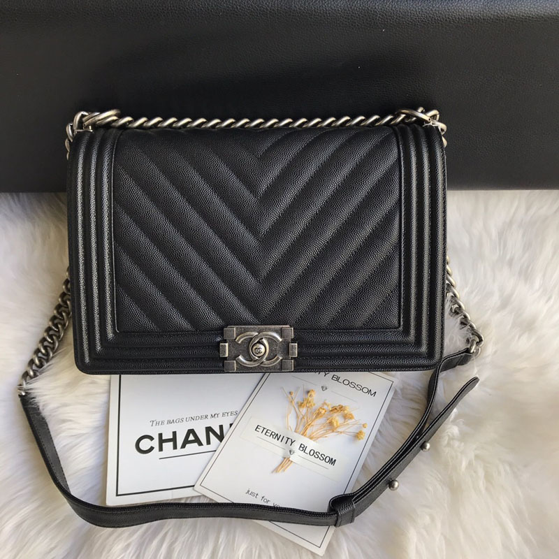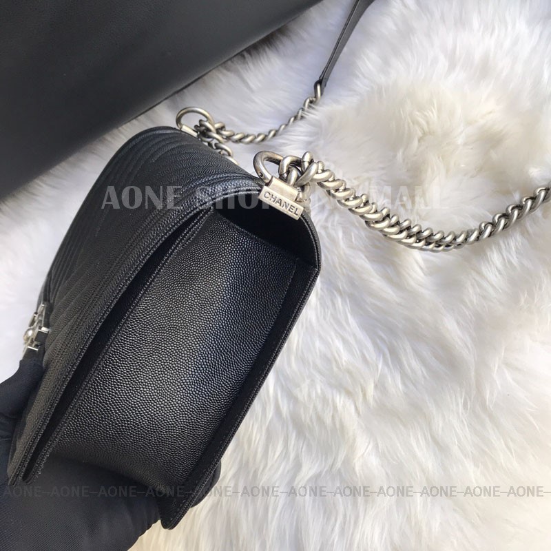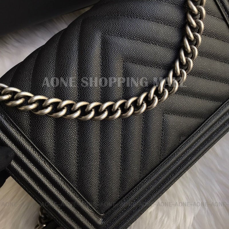 • 샤넬 미디엄  캐비어 레더 쉐브론 보이 플랩 숄더 백 라이트 골드 실버
