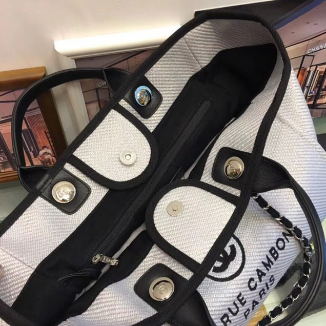 Chanel-deauville-canvas-tote-medium-shopping-bag-white-black