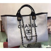 • 샤넬 도빌 캔버스 토트 미디엄 쇼핑 백 화이트 블랙