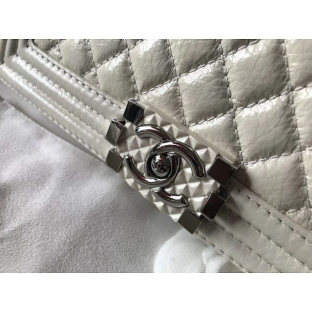 • 샤넬 미디엄  메탈릭 크럼플드 왁시 레더 레진 보이 플랩 숄더 백 크리미
