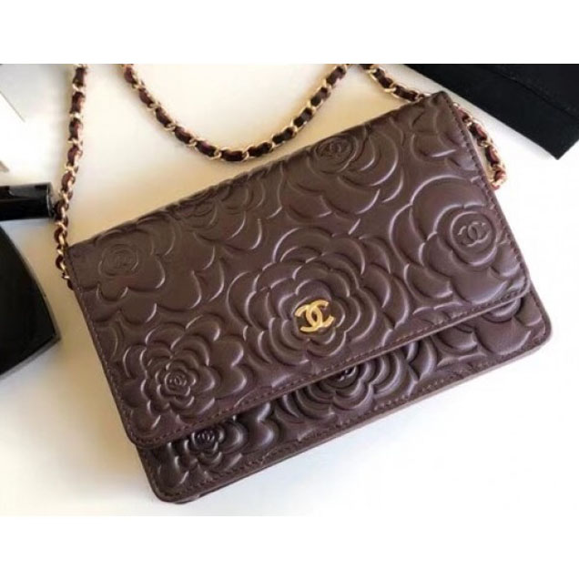 샤넬 램스킨 까멜리아 월릿 온 체인 WOC 백 버건디 > 가방