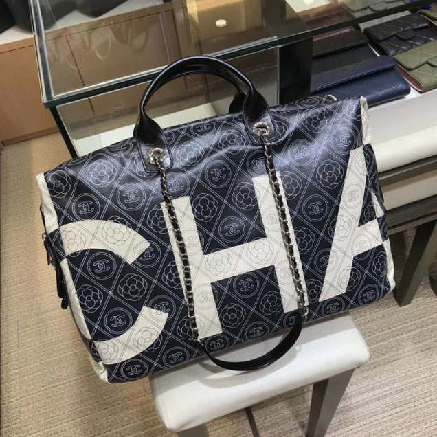 Chanel-printed-canvas-maxi-large-bowling-bag-a57164-black-beige-2018