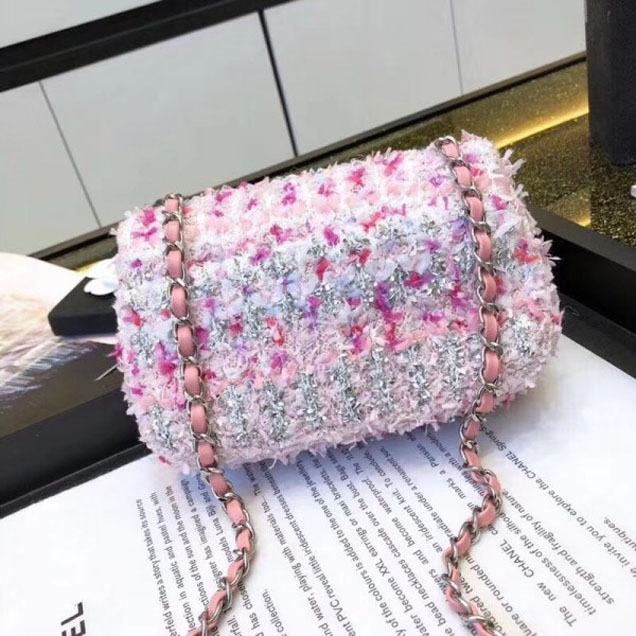 샤넬 트위드 시퀸 스몰 플랩 백 핑크