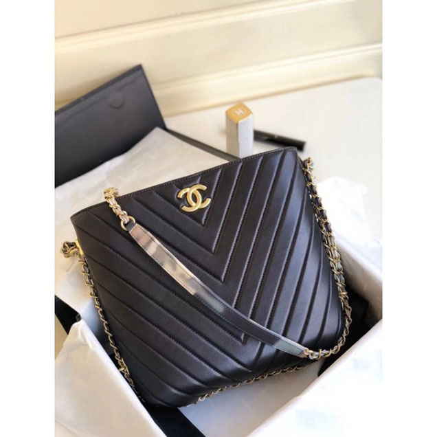 Chanel-chevron-multicolor-chain-bucket-bag-black-2018