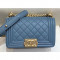 샤넬 스몰 보이 플랩 숄더 백 오리지널 캐비어 레더 데님 블루 골드 > 가방