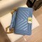 • 샤넬 미디엄 램스킨 쉐브론 보이 플랩 숄더 백 데님 블루 골드