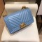 • 샤넬 미디엄   램스킨 쉐브론 보이 플랩 숄더 백 데님 블루 골드