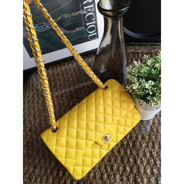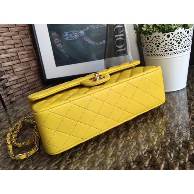 Chanel-classic-flap-medium-bag-a1112-yellow-in-sheepskin-leather-with-gold-hardware