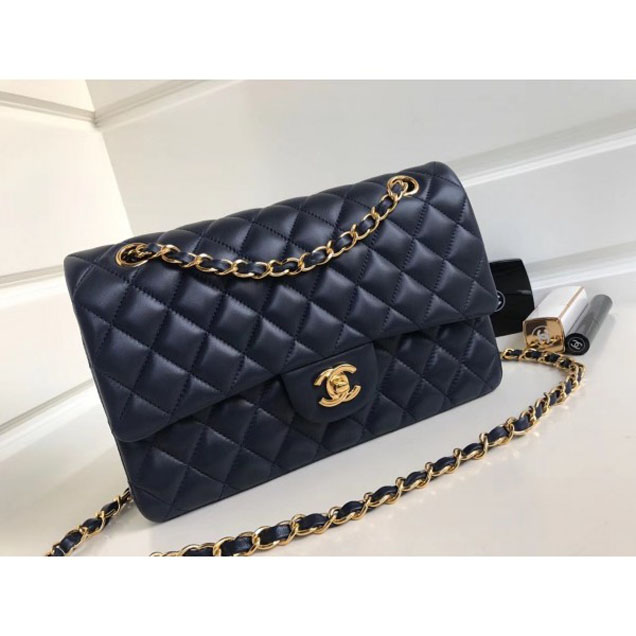 Chanel-classic-flap-medium-bag-a1112-navy-blue-in-sheepskin-leather-with-gold-hardware