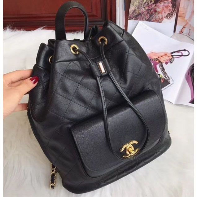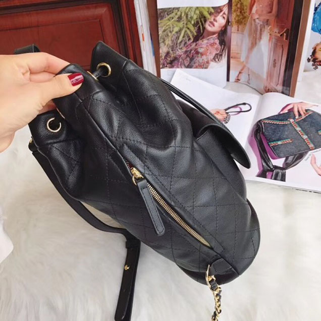 • 샤넬 그레인드 카프스킨 플랩 드로우스트링 백팩 블랙