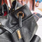 • 샤넬 A82545 캐비어 레더 울 챔스 쉐브론 파우치 클러치 라지 백