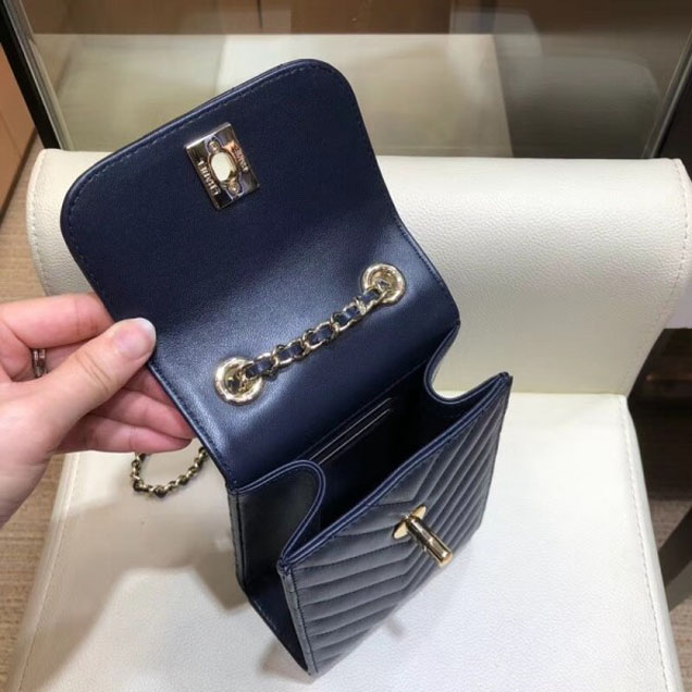 Chanel-lambskin-chevron-trendy-cc-phone-holder-pouch-bag-dark-blue-with-chain-2018