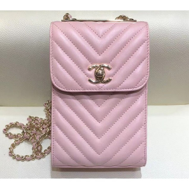 Chanel-lambskin-chevron-trendy-cc-phone-holder-pouch-bag-pink-with-chain-2018