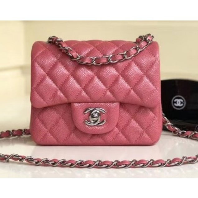 • 샤넬 펄 캐비어 레더 클래식 플랩 미니 백 다크 핑크