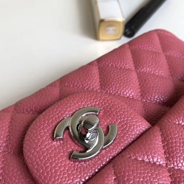 • 샤넬 펄 캐비어 레더 클래식 플랩 미디엄  백 다크 핑크
