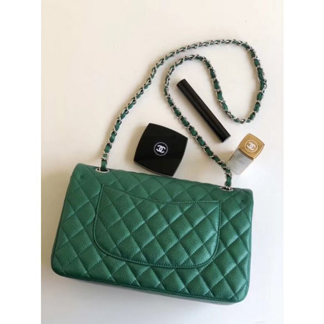 • 샤넬 펄 캐비어 레더 클래식 플랩 미디엄  백 그린