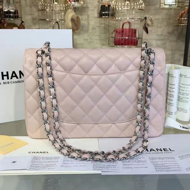 • 샤넬 클래식 플랩 백 배아자 카프스킨 실버 톤 메탈
