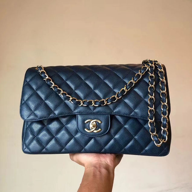 Chanel-classic-flap-bag-30cm-navy-grained-calfskin-gold-tone-metal