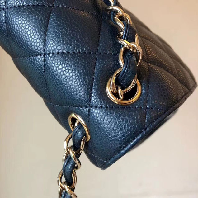 • 샤넬 클래식 플랩 백 네이비 카프스킨 골드 톤 메탈