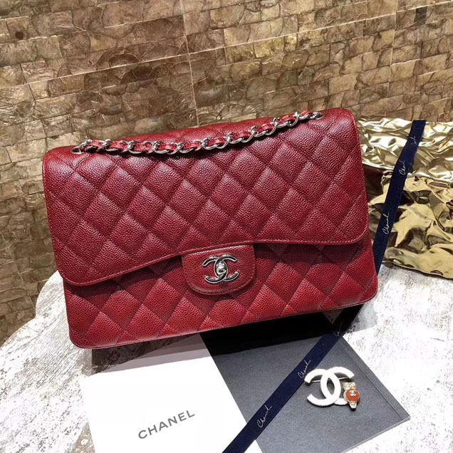 Chanel-classic-flap-bag-burgundy-grained-calfskin-silver-tone-metal