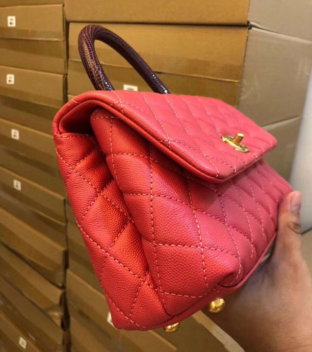 Chanel-small-flap-bag-with-top-handle-pink-24cm-grained-calfskin-gold-tone-metal