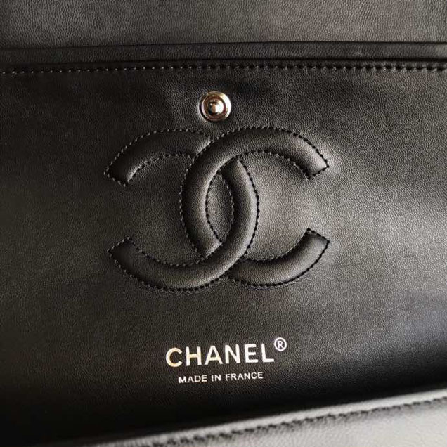 Chanel-classic-double-flap-bag-25cm-silver-hardware-patent-lambskin-leather-spring-summer-act-2-2018-collection-black