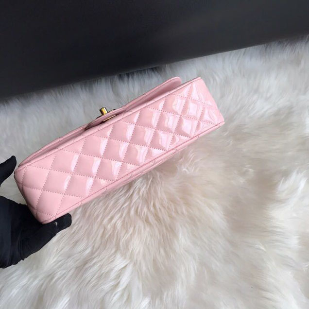 Chanel-classic-double-flap-bag-25cm-gold-hardware-patent-lambskin-leather-spring-summer-act-2-2018-collection-pink