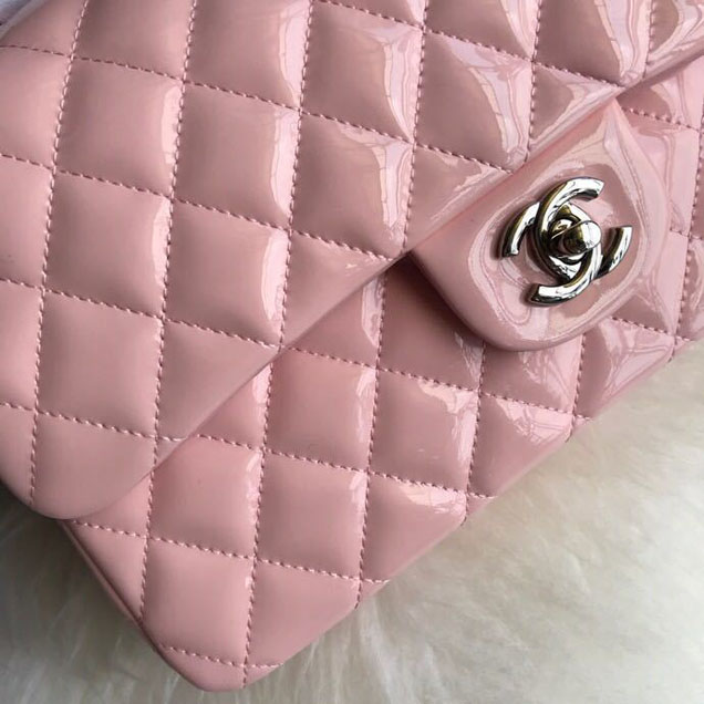 Chanel-classic-double-flap-bag-25cm-silver-hardware-patent-lambskin-leather-spring-summer-act-2-2018-collection-pink