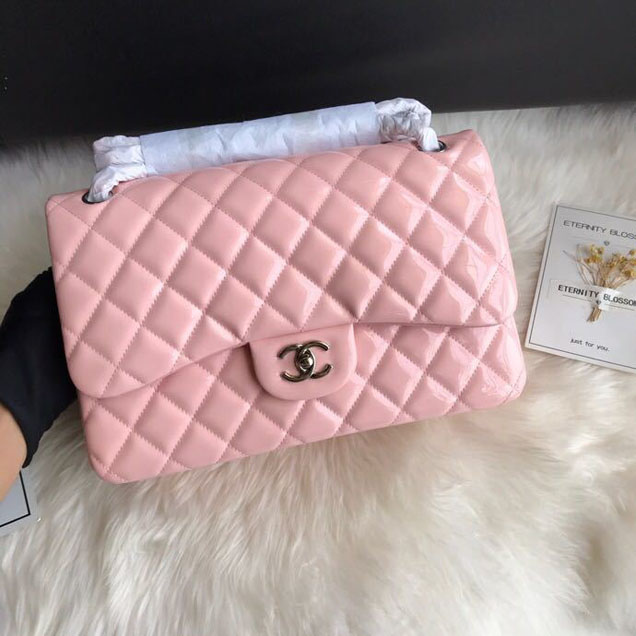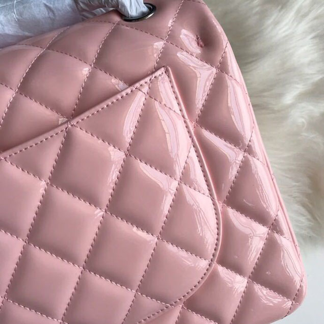 Chanel-classic-double-flap-bag-30cm-silver-hardware-patent-lambskin-leather-spring-summer-act-2-2018-collection-pink
