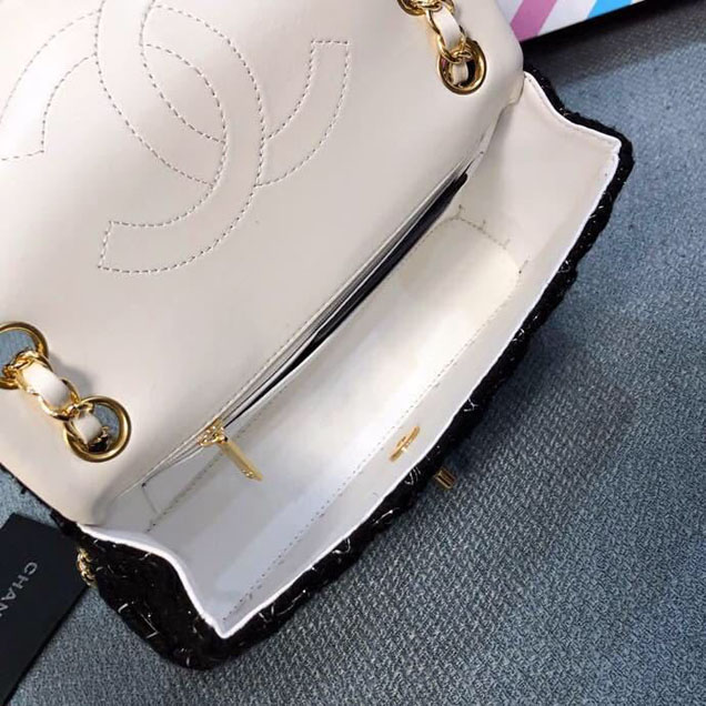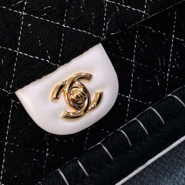 Chanel-tweed-and-woven-straw-classic-flap-bag-25cm-gold-hardware-caviar-lambskin-leather-cruise-2019-collection-black