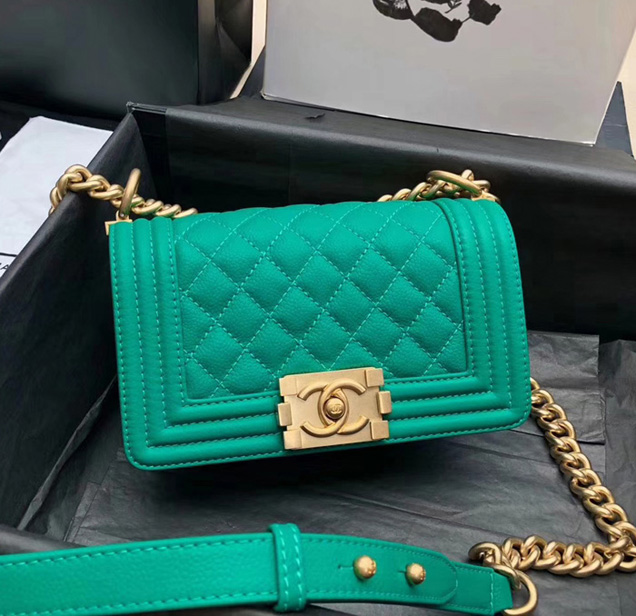 Chanel-small-le-boy-flap-bag-green-grained-calfskin-gold-tone-metal