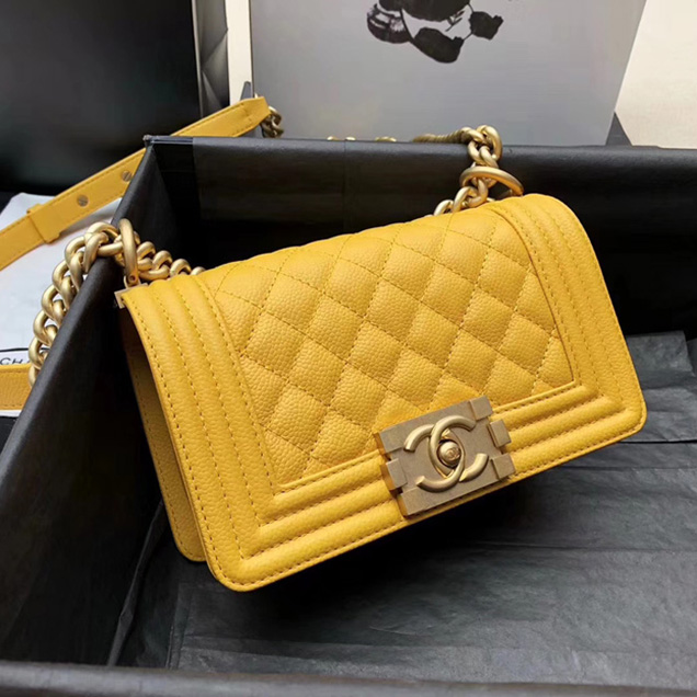 Chanel-small-le-boy-flap-bag-yellow-grained-calfskin-gold-tone-metal