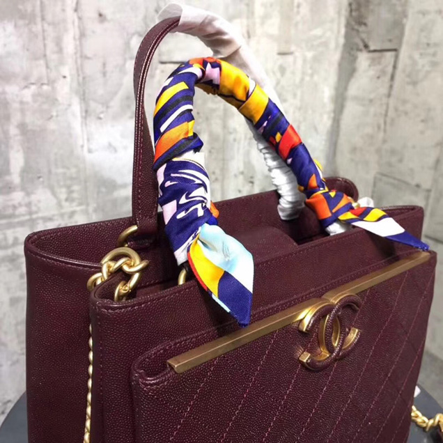 • 샤넬 A57563 카프스킨 레이디 코코 스몰 쇼핑 백 버건디