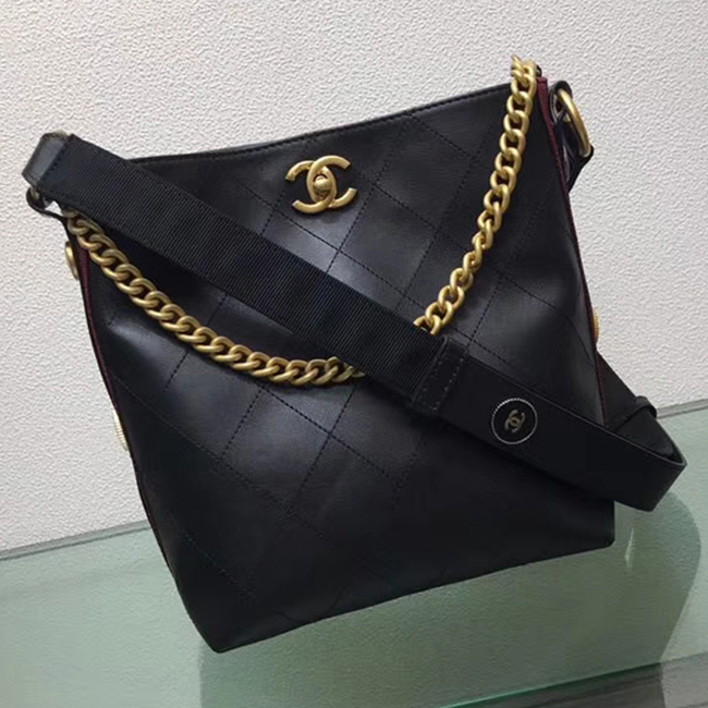 샤넬 A57573 버튼 업 카프스킨 호보 핸드백 블랙 > 가방