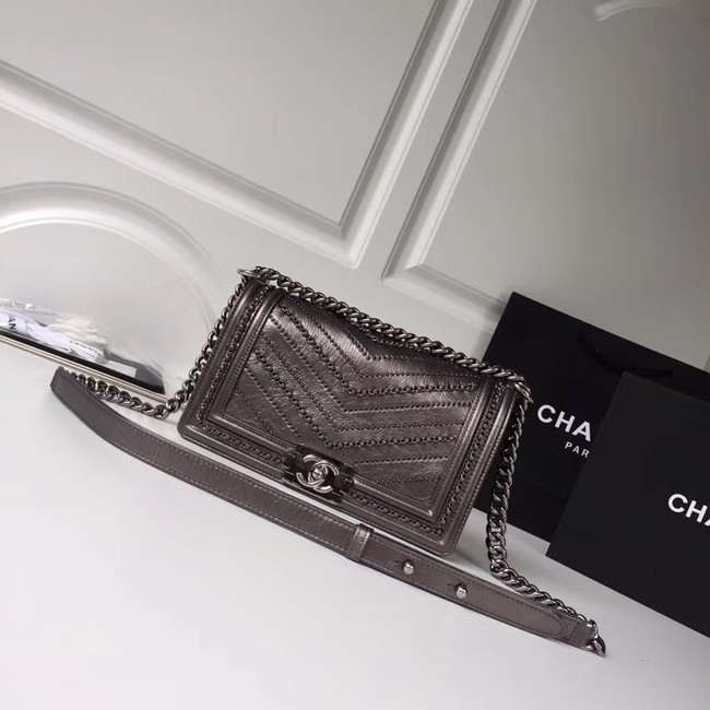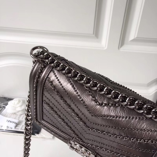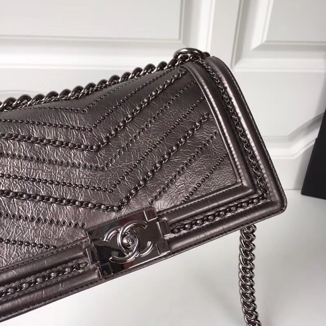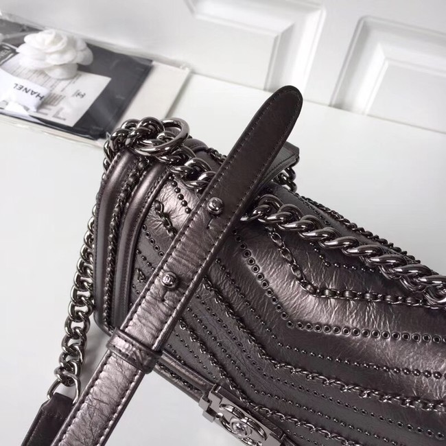 샤넬 A67086 보이 핸드백 크럼플드 카프스킨 실버 톤 메탈 > 가방