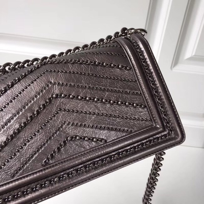 • 샤넬 A67086 보이 핸드백 크럼플드 카프스킨 실버 톤 메탈