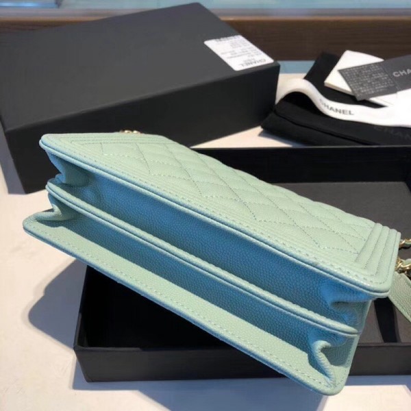 샤넬 그레인드 카프스킨 보이 스퀘어 월릿 온 체인 WOC 제이드 > 가방