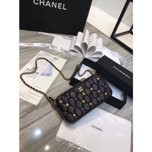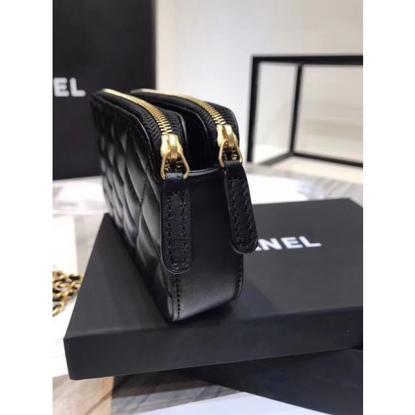 • 샤넬 램스킨 18K 챔스 더블 짚 파우치 체인 블랙